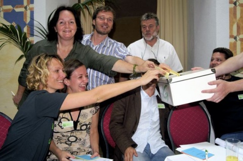 Wahlen können auch Spass machen - hier bei der Stimmabgabe für die neuen Vorstandsmitglieder der Grünen Oberösterreich!