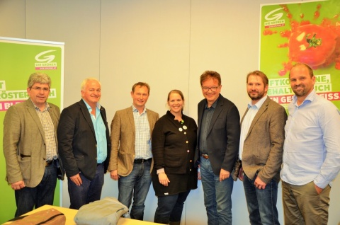 von links: Johannes Voitleithner (Geschäftsführer GBB), Raimund und Katharina Stöckl, Landesrat Rudi Anschober und ich, Clemens Stammler (Obmann GBB OÖ, LW-Kammerrat)