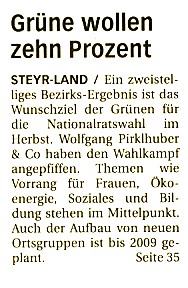 Als Spitzenkandidat des Traunviertels war mir aber auch die Einbindung der weiteren Grün-KandidatInnen auf der regionalen Wahlkreis-Liste, nämlich Ute Fanta, Gemeiderätin aus Steyr am 2. Platz und Reinhard Kaufmann, Sozialexperte am 3. Platz besonders wichtig.